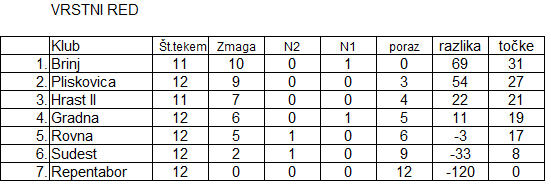 ROVNA - PLISKOVICA 6 : 12