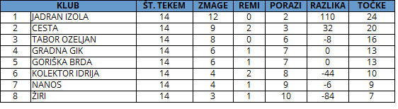 TABOR OZELJAN - KOLEKTOR IDRIJA 12 : 10